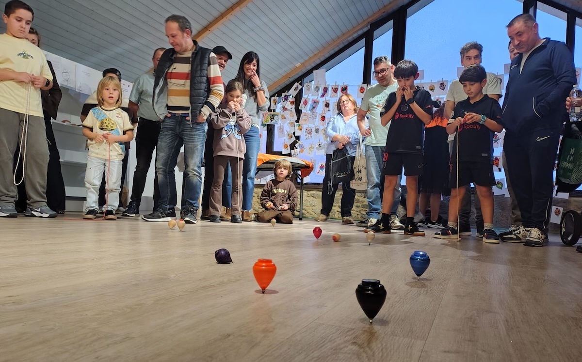Divertidísima xornada de recuperación dun xogos tradicionais que máis volve poñerse de moda en Galicia. Xa non son aqueles trompos artesanais de madeira; agora son de plástico e de cores estridentes. Pero o trompo, o peón ou a buxaina, é un dos xogos máis vivos do país.