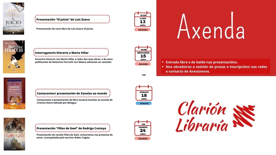 A Libraría Clarión de Carballo prepara unha serie de actividades polo Mes do Libro.