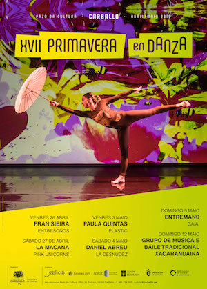 En marcha a XII edición do programa Primavera en Danza de Carballo. Unha cita cultural única en Galicia pola súa estabilidade e porque ofrece unha ampla perspectiva de calidade de danza contemporánea e de propostas moi significativas a nivel nacional. Así, do 26 de abril ao 12 de maio chegarán 6 citas coreográficas, cinco de compañías galegas e un da madrileña de Daniel Abreu, nun programa que combina propostas arriscadas con outras máis accesibles a todo tipo de público.