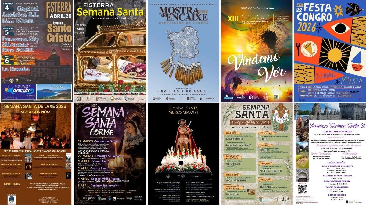 Repasamos a axenda para que lle poidades contar todo o que pasa na Costa da Morte por Semana Santa aos vosos visitantes. Ademais do triunvirato principal de citas (Fisterra, Camariñas e Carnota), repasamos as citas que nos levan por Muxía coa Festa do Congro, polas procesións de Muros, Corme e Laxe, polas citas culturais de Malpica ou Vimianzo, ou pola arte contemporánea que toma a aldea fisterrá de Mallas.
