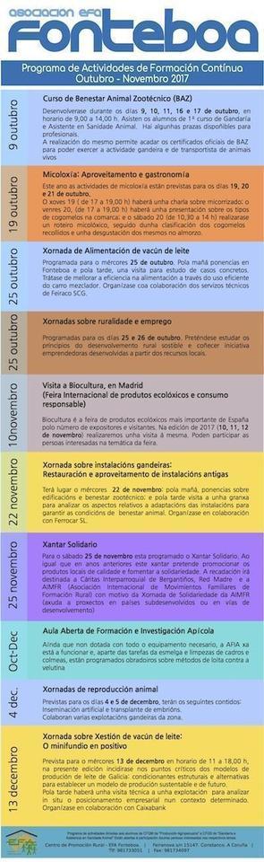 Novembro tamén será un mes cargado de actividades no EFA Fonteboa de Coristanco. O mes arranca coa visita a Biocultura; unha feira internacional de productos ecolóxicos e consumo responsable que ten lugar en Madrid os días 10, 11 e 12 de novembro. Esta viaxe está aberta a todos aqueles interesados na materia.