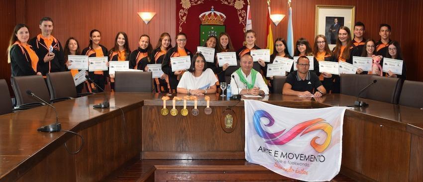 Despois da recepción a Elian Numa, o alcalde de Cee colleulle gusto ás recepcións municipais e esta semana recibía oficialmente no Concello ás famiias de Olimpia e Club Arte e Movemento. A verdade é ben o merecen estas dúas familias, despois dos sendos éxitos nos pasados campionatos galegos.