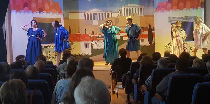 Noite de nervios e de emoción a que viviu Fisterra o pasado venres. O Salón de Actos do Concello vestíase de gala para a estrea de "Agora mandamos nós (con perdón de Aristófanes)”, a nova obra da Escola de teatro do Concello de Fisterra.