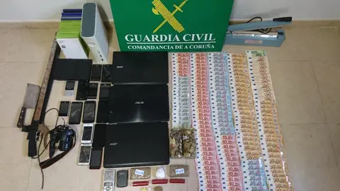 No posterior rexistro domiciliario do detido, os axentes incautáronse doutros 1.813 gramos de haxix, xunto con 150 gramos de substancia branca de corte, presuntamente utilizada para a cocaína, ademais de 3.470 euros en metálico, unha báscula de precisión e diversos materiais empregados. para a preparación e distribución das drogas, como plásticos, caucho para a produción de envoltorios e unha máquina de selado ao baleiro.