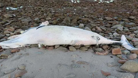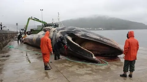 Este luns varaba un cadáver de balea xibarda nas inmediacións do Cabo Touriñán. Un corpo, duns 10 metros, fica nas rochas tras "unha morte non natural", asfixiada nunha rede da que aínda leva colgando cabos, explican dende a CEMMA (Coordinadora de Estudios de Mamíferos Mariños).