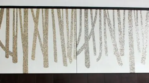 A mostra inclúe 7 pezas: unha gran obra que reproduce a súa mesa de traballo, as famosas botas de buxo (ás que Manuel Rivas dedicou un poema), unha peza da súa serie Árbores, do 2006, rematada pouco antes da súa morte, dúas obras con materiais reciclados do lixo, neste caso de latas de refrescos e papel fabricado polo propio artista. Tamén dispuxemos as cuncas de cerámica orixinais con mica e outros elementos que gardaba na súa casa para futuras creacións. Estas cuncas de cerámica tamén as trouxemos para que se poida imaxinar mellor o seu proceso creativo. Trouxemos un debuxo que reflexa como estaban dispostas na súa vivenda da Coruña.