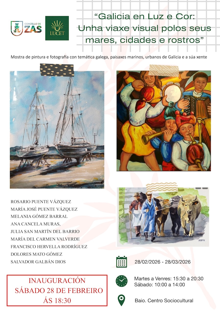 O Centro Sociocultural de Baio acollerá o vindeiro sábado, 28 de febreiro, ás 18:30 h, a inauguración da mostra fotográfica e de pintura “Galicia en Luz e Cor: Unha viaxe visual polos seus mares, cidades e rostros”.