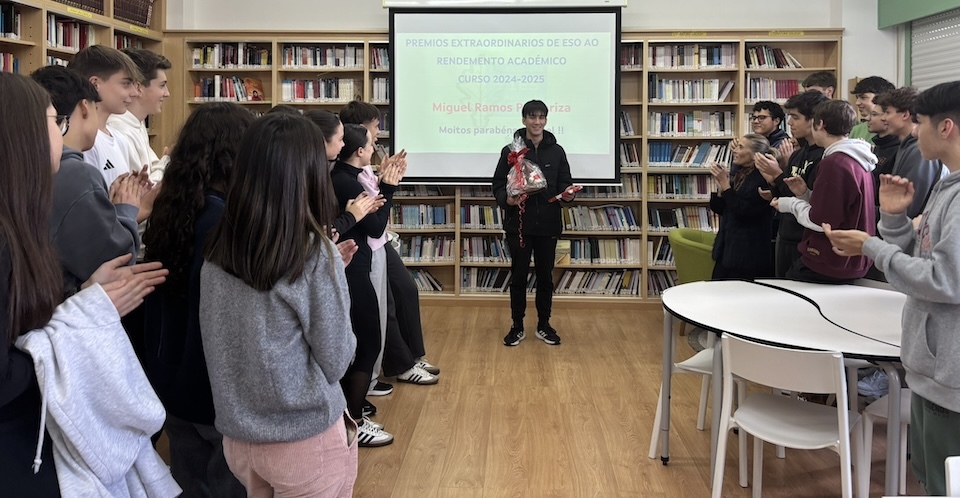 Con este orgullo, a comunidade do IES Maximino Romero de Lema recibía onte a Miguel, ao que parabeniza polo seu extraordinario rendemento ao longo de toda a etapa.
