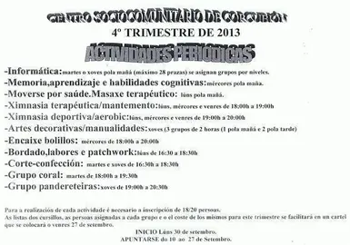 Corcubión Os maiores de Corcubión tamén comezan o curso con novas actividades no Centro Sociocomunitario Deindo 12/set./2013