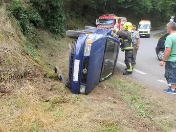 Carballo Un conductor resulta ileso tras volcar no seu coche na ponte do río Bardoso Lorena Martínez 27/xul./2018