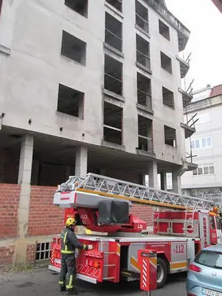 Os bombeiros retiran unhas tellas soltas dun edificio en obras de Carballo Lorena Martínez 15/dec./2016