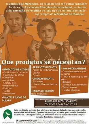 Mazaricos e Lires inician unha campaña de recollida de material para os campos de refuxiados Lorena Martínez 24/mar./2016