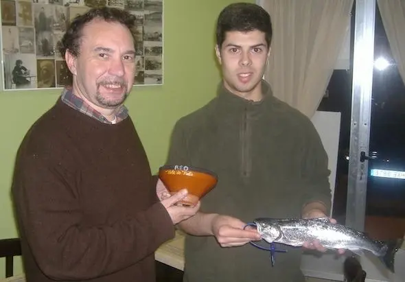 O dumbriés Iván Cernadas pesca o primeiro reo da tempada no coto da Ponte do Porto Deindo 02/maio/2014