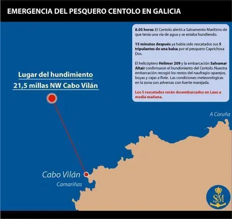 Rescatados por un barco de Laxe 5 tripulantes dun pesqueiro muxián afundido no Cabo Vilán Redacción 07/abr./2017