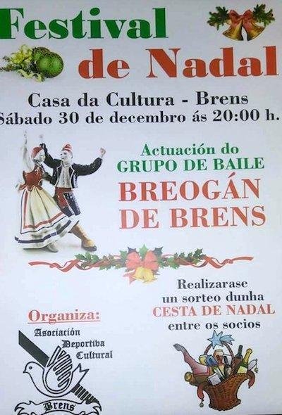 A ADC Brens organiza para este sábado 30 de decembro un Festival de Nadal con moita tradición. A cita a partir das 20:00h na Casa da Cultura de Brens.