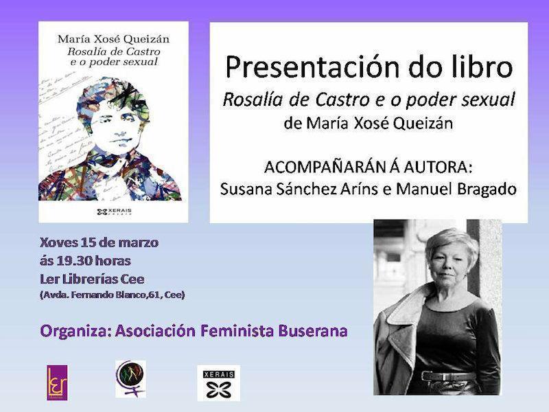 No marco das actividades do Día da Muller, A libería Ler de Cee acolle a presentación do libro "Rosalía de Castro e o poder sexual", organizado pola Organización Feminista Buserana.
