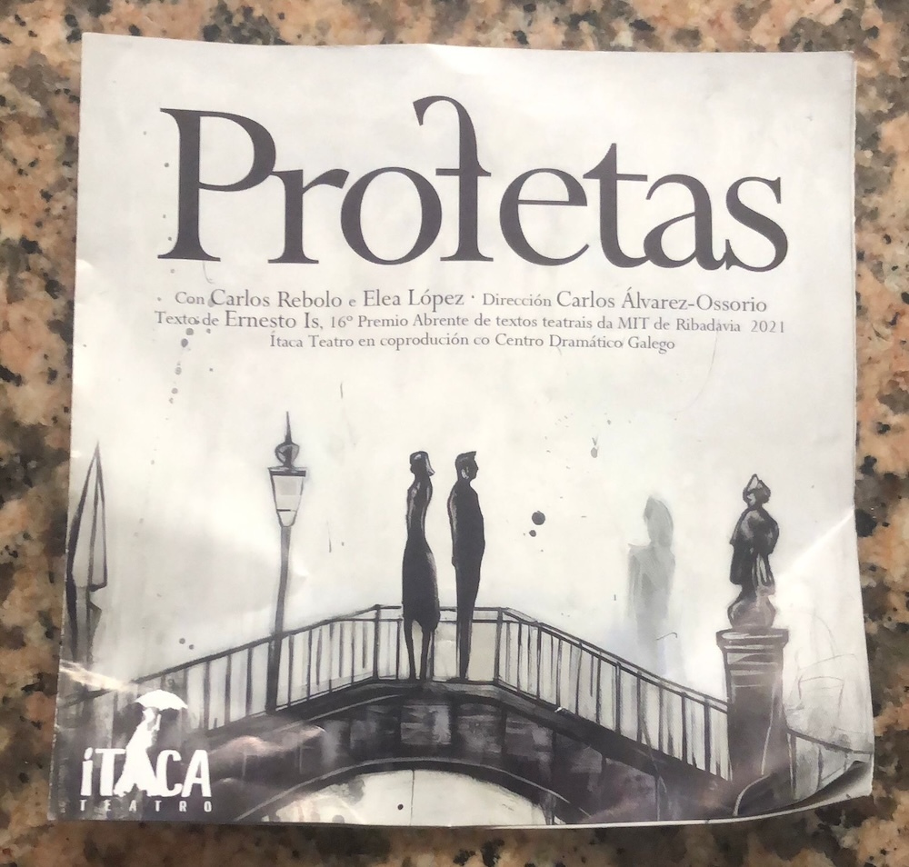 Treinta de noviembre. Seis de la tarde. Fin del fin de semana. Estos dos últimos días han sido largos y he dormido más bien poco. Descuelgo la capa para ponérmela - frío enorme - y me voy al teatro. Bueno, seamos exactos: me voy a ver una obra de teatro a la Casa de la Cultura de Cee; para Corral de Comedias ya basta el gobierno municipal. “Profetas”; magnífica obra a cargo de la compañía Ítaca. Al acto concurre poca gente - veintiséis personas -.