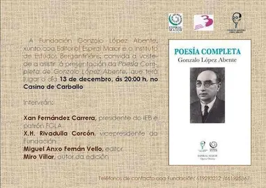 Cultura Carballo acolle unha nova presentación da Poesía completa de López Abente Deindo 10/dec./2013